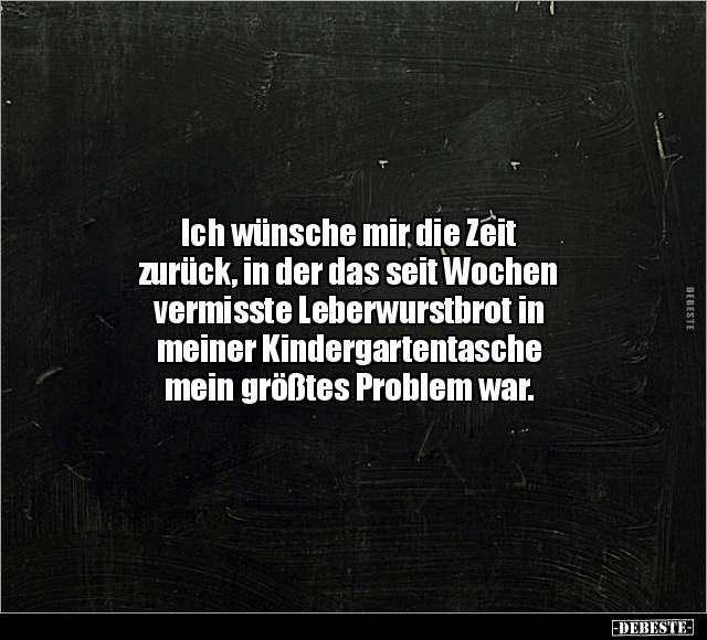 Ich wünsche mir die Zeit zurück, in der das seit Wochen vermisste Leberwurstbrot in meiner Kindergartentasche mein größtes Problem war.