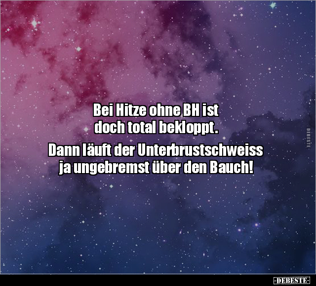 Bei Hitze ohne BH ist doch total bekloppt. Dann läuft der Unterbrustschweiss ja ungebremst über den Bauch!