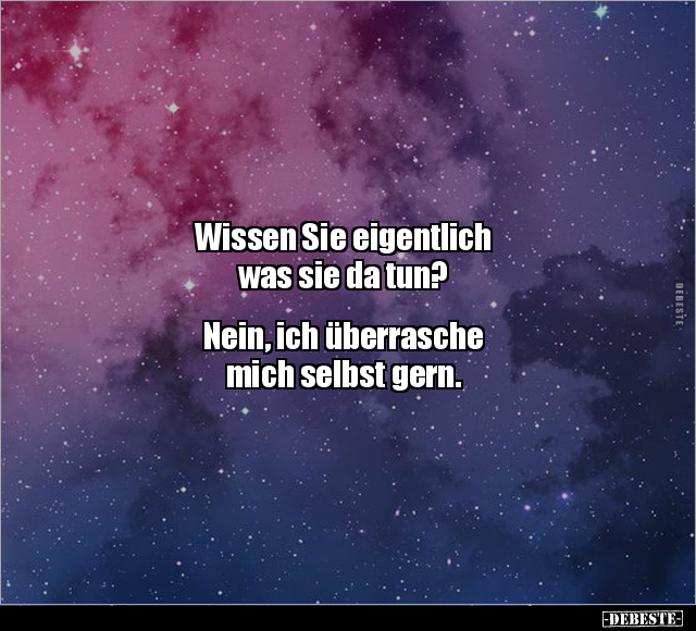 Wissen Sie eigentlich was sie da tun? Nein, ich überrasche mich selbst gern.