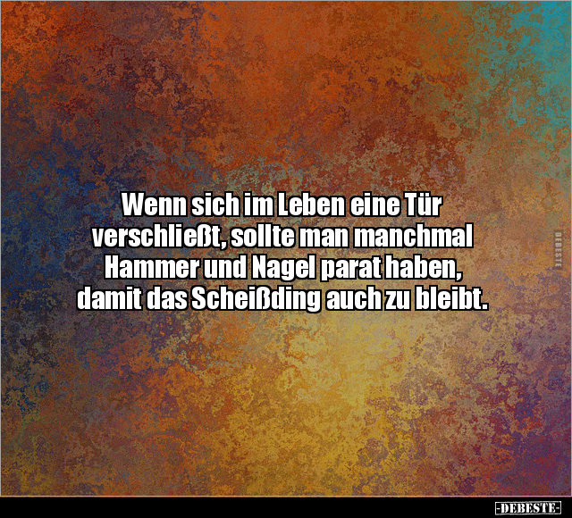 Wenn sich im Leben eine Tür verschließt, sollte man manchmal Hammer und Nagel parat haben, damit das Scheißding auch zu bleibt.