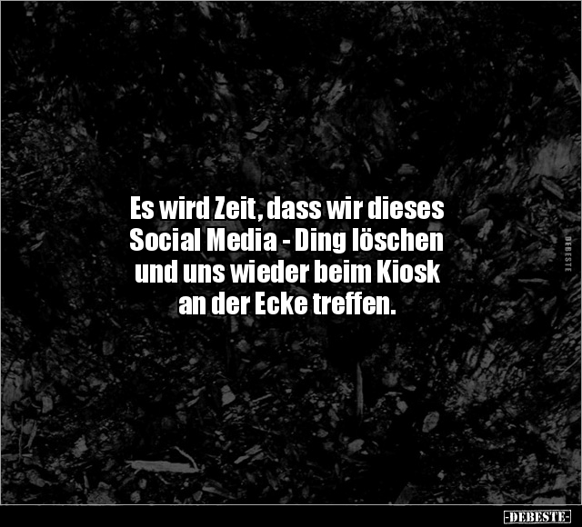 Es wird Zeit, dass wir dieses Social Media - Ding löschen und uns wieder beim Kiosk an der Ecke treffen.