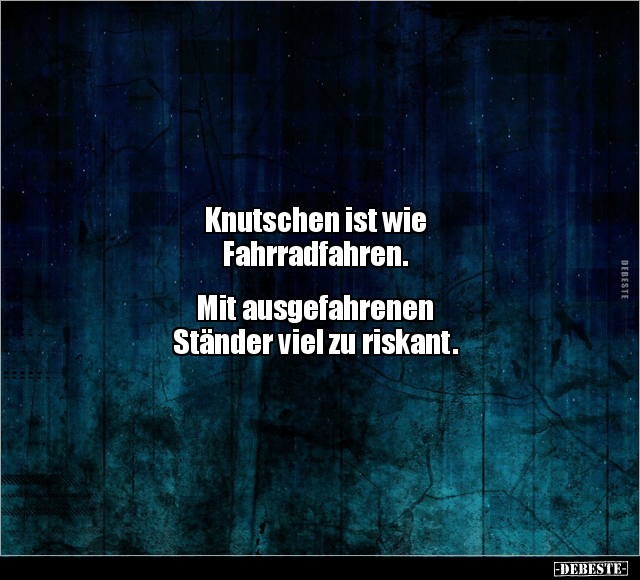 Knutschen ist wie Fahrradfahren. Mit ausgefahrenen Ständer viel zu riskant.