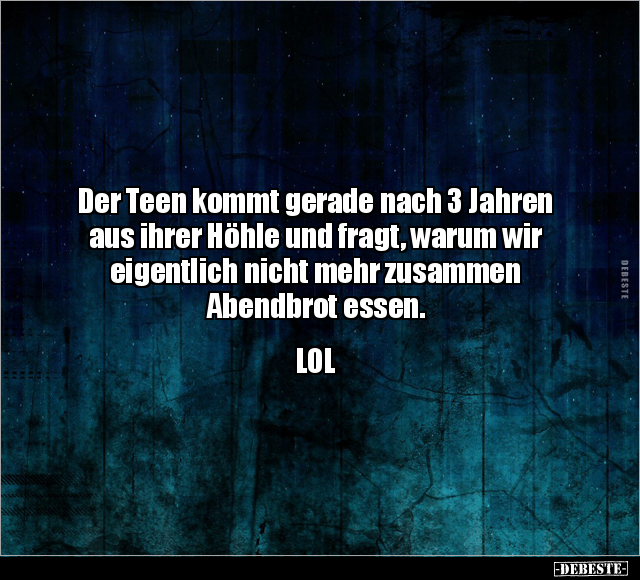 Der Teen kommt gerade nach 3 Jahren aus ihrer Höhle und fragt, warum wir eigentlich nicht mehr zusammen Abendbrot essen. LOL