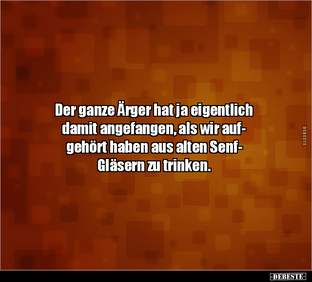 Der ganze Ärger hat ja eigentlich damit angefangen, als wir auf- gehört haben aus alten Senf- Gläsern zu trinken.