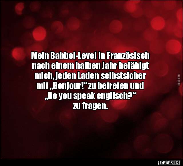 Mein Babbel-Level in Französisch nach einem halben Jahr befähigt mich, jeden Laden selbstsicher mit „Bonjour!“ zu betreten und „Do you speak englisch?“ zu fragen.