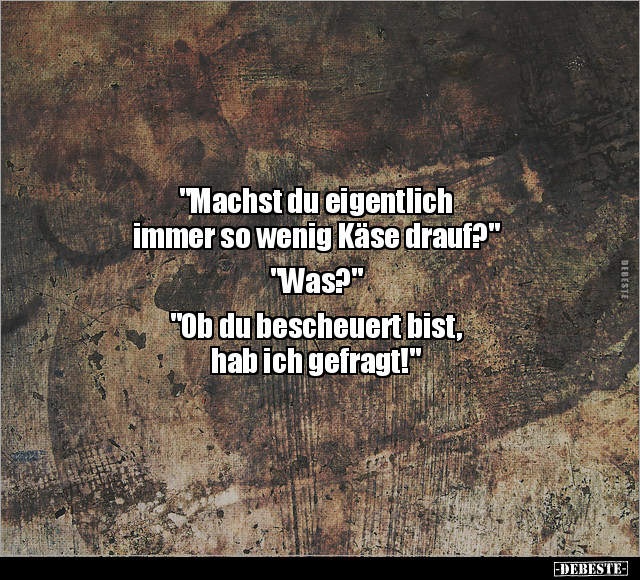 "Machst du eigentlich immer so wenig Käse drauf?" "Was?" "Ob du bescheuert bist, hab ich gefragt!"