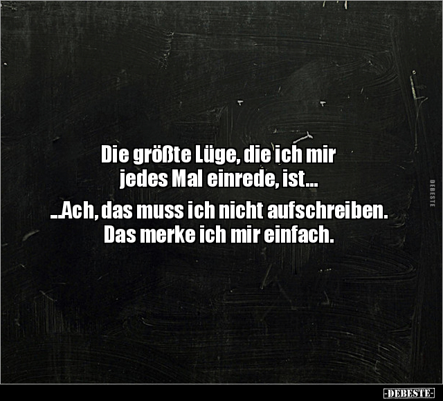 Die größte Lüge, die ich mir jedes Mal einrede, ist... ...Ach, das muss ich nicht aufschreiben. Das merke ich mir einfach.