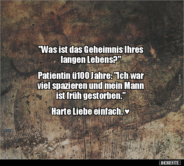 "Was ist das Geheimnis Ihres langen Lebens?" Patientin ü100 Jahre: "Ich war viel spazieren und mein Mann ist früh gestorben." Harte Liebe einfach. ♥