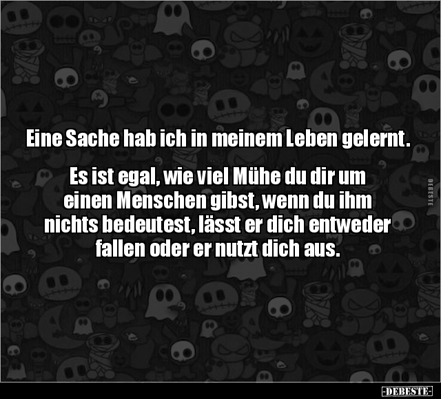 Eine Sache hab ich in meinem Leben gelernt. Es ist egal, wie viel Mühe du dir um einen Menschen gibst, wenn du ihm nichts bedeutest, lässt er dich entweder fallen oder er nutzt dich aus.