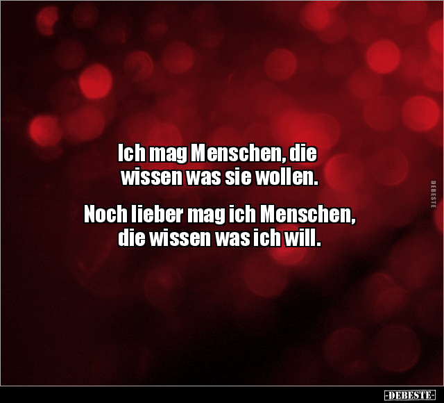 Ich mag Menschen, die wissen was sie wollen. Noch lieber mag ich Menschen, die wissen was ich will.