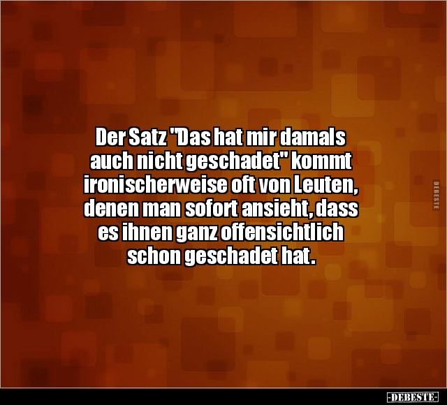 Der Satz "Das hat mir damals auch nicht geschadet" kommt ironischerweise oft von Leuten, denen man sofort ansieht, dass es ihnen ganz offensichtlich schon geschadet hat.