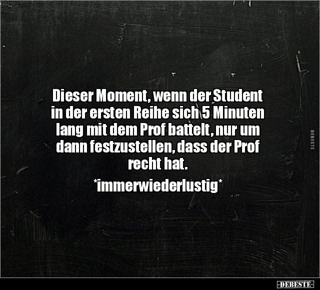 Dieser Moment, wenn der Student in der ersten Reihe sich 5 Minuten lang mit dem Prof battelt, nur um dann festzustellen, dass der Prof recht hat. *immerwiederlustig*