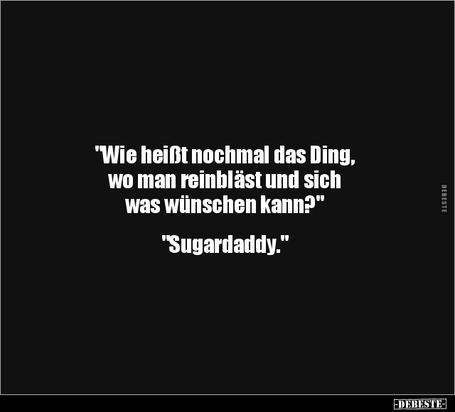 "Wie heißt nochmal das Ding, wo man reinbläst und sich was wünschen kann?" "Sugardaddy."