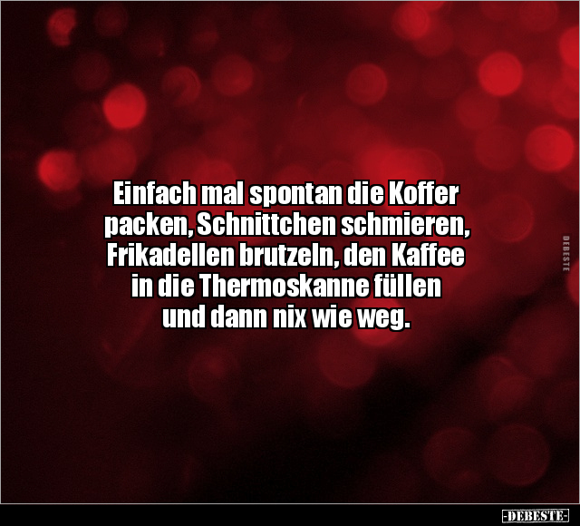 Einfach mal spontan die Koffer packen, Schnittchen schmieren, Frikadellen brutzeln, den Kaffee in die Thermoskanne füllen und dann nix wie weg.