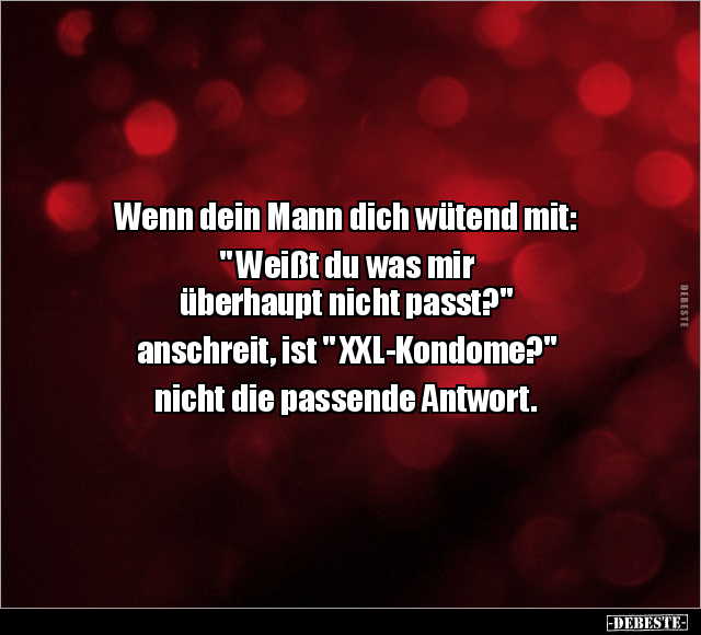 Wenn dein Mann dich wütend mit: " Weißt du was mir überhaupt nicht passt?" anschreit, ist " XXL-Kondome?" nicht die passende Antwort.