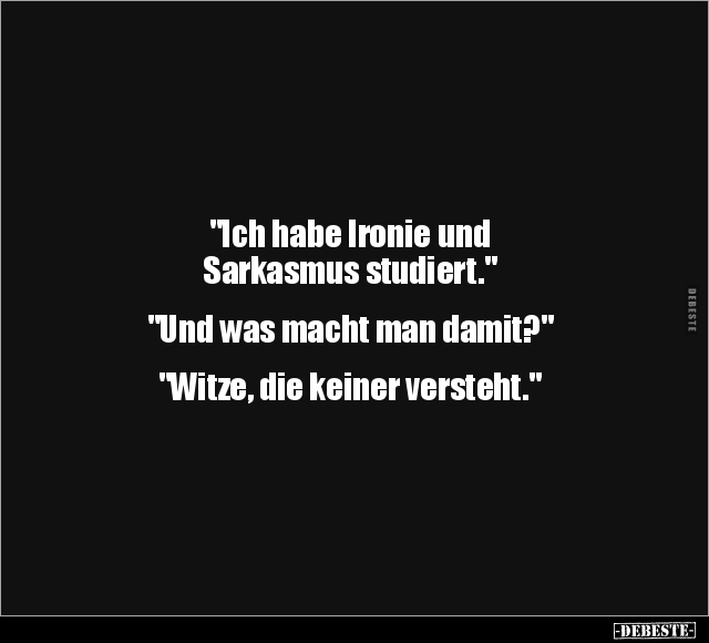 "Ich habe Ironie und Sarkasmus studiert." "Und was macht man damit?" "Witze, die keiner versteht."
