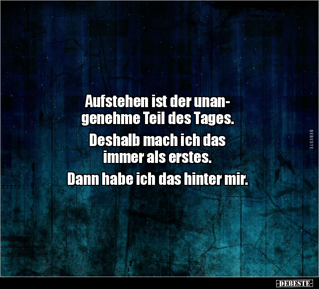 Aufstehen ist der unan- genehme Teil des Tages. Deshalb mach ich das immer als erstes. Dann habe ich das hinter mir.