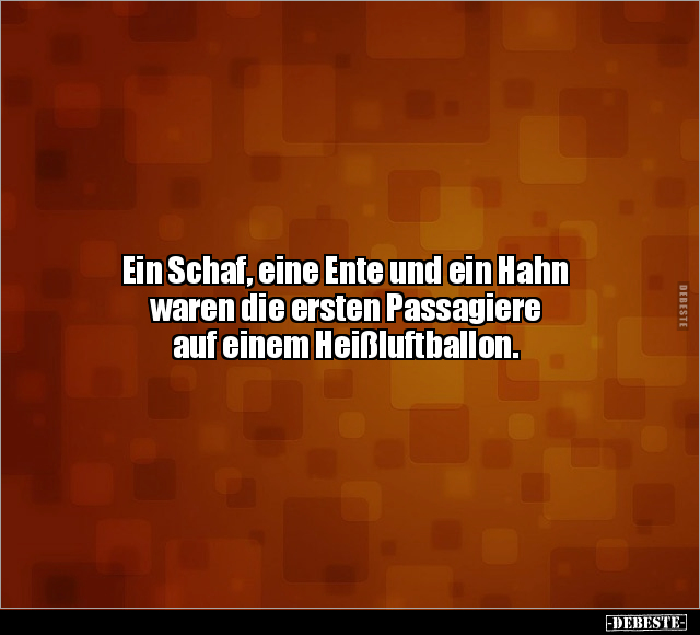 Ein Schaf, eine Ente und ein Hahn waren die ersten Passagiere auf einem Heißluftballon.