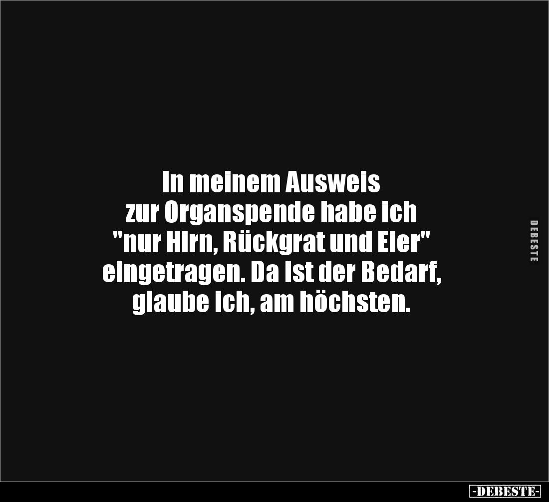 In meinem Ausweis zur Organspende habe ich "nur Hirn, Rückgrat und Eier" eingetragen. Da ist der Bedarf, glaube ich, am höchsten.