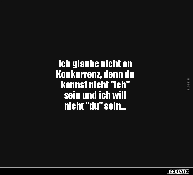 Ich glaube nicht an Konkurrenz, denn du kannst nicht "ich" sein und ich will nicht "du" sein...