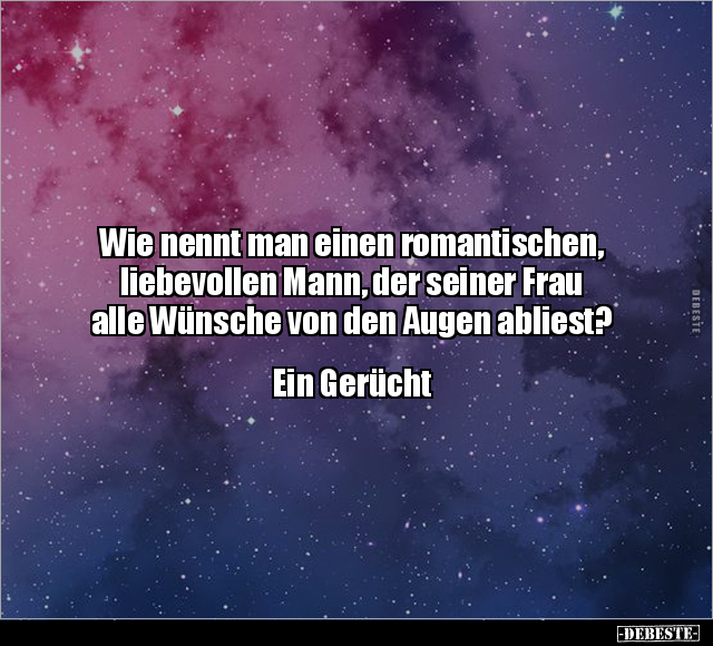 Wie nennt man einen romantischen, liebevollen Mann, der seiner Frau alle Wünsche von den Augen abliest? Ein Gerücht