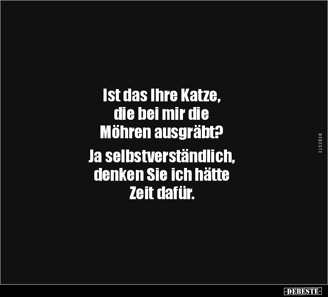Ist das Ihre Katze, die bei mir die Möhren ausgräbt? Ja selbstverständlich, denken Sie ich hätte Zeit dafür.