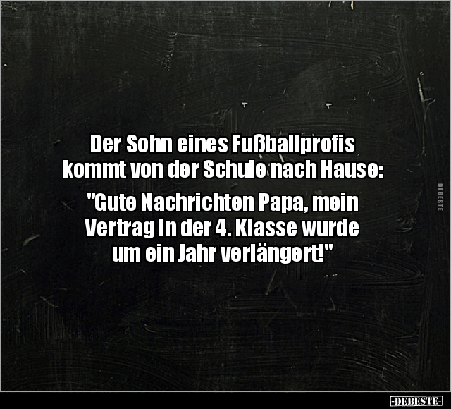 Der Sohn eines Fußballprofis kommt von der Schule nach Hause: "Gute Nachrichten Papa, mein Vertrag in der 4. Klasse wurde um ein Jahr verlängert!"