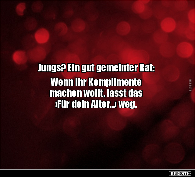 Jungs? Ein gut gemeinter Rat: Wenn Ihr Komplimente machen wollt, lasst das ›Für dein Alter…‹ weg.