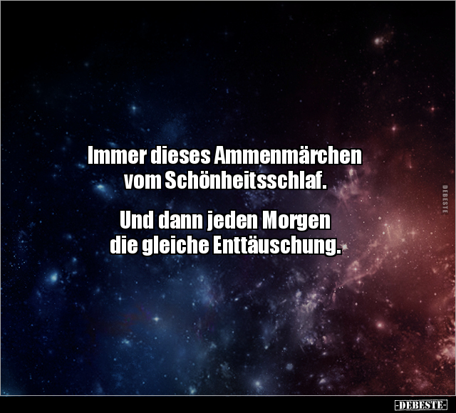 Immer dieses Ammenmärchen vom Schönheitsschlaf. Und dann jeden Morgen die gleiche Enttäuschung.