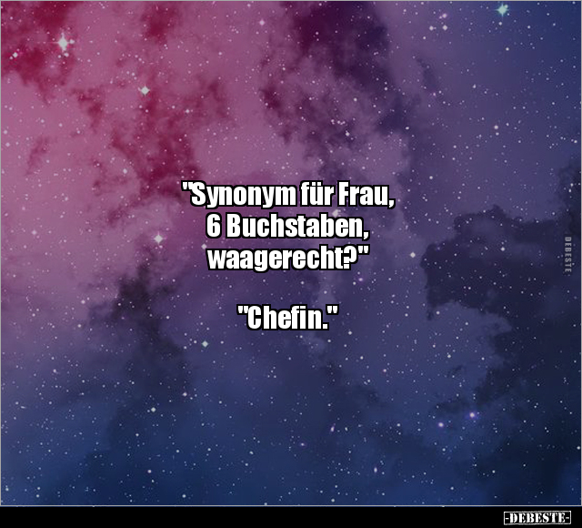 "Synonym für Frau, 6 Buchstaben, waagerecht?" "Chefin."