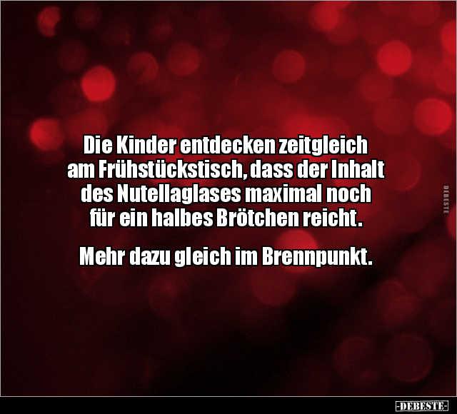 Die Kinder entdecken zeitgleich am Frühstückstisch, dass der Inhalt des Nutellaglases maximal noch für ein halbes Brötchen reicht. Mehr dazu gleich im Brennpunkt.