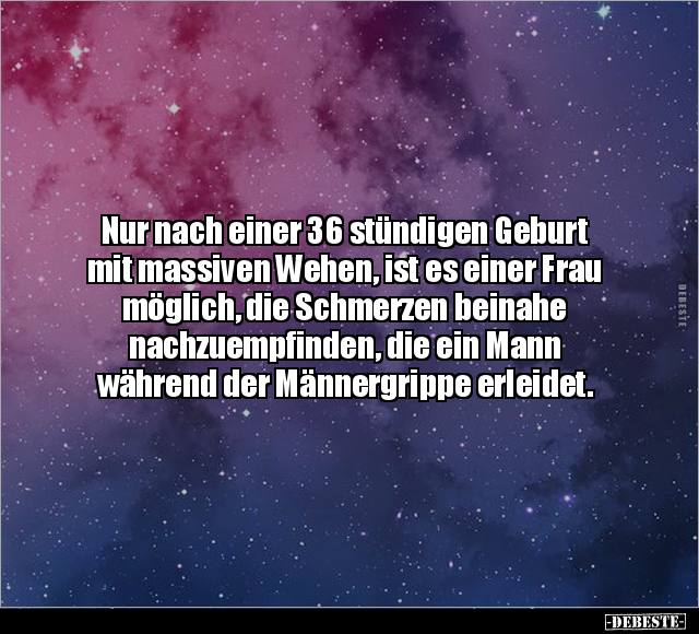 Nur nach einer 36 stündigen Geburt mit massiven Wehen, ist es einer Frau möglich, die Schmerzen beinahe nachzuempfinden, die ein Mann während der Männergrippe erleidet.