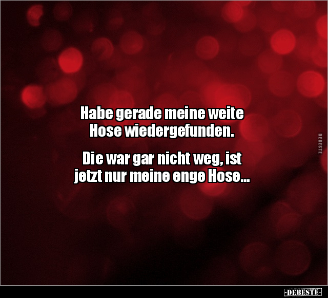 Habe gerade meine weite Hose wiedergefunden. Die war gar nicht weg, ist jetzt nur meine enge Hose...