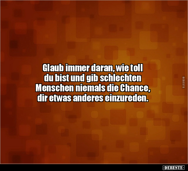 Glaub immer daran, wie toll du bist und gib schlechten Menschen niemals die Chance, dir etwas anderes einzureden.