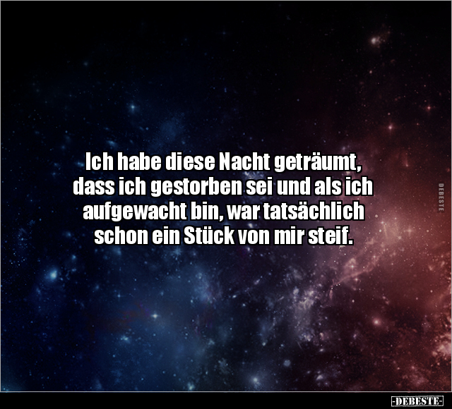 Ich habe diese Nacht geträumt, dass ich gestorben sei und als ich aufgewacht bin, war tatsächlich schon ein Stück von mir steif.