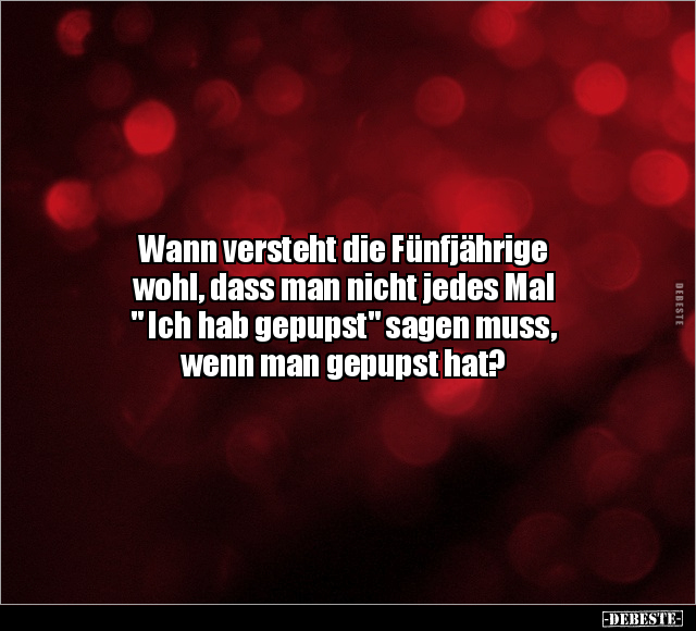 Wann versteht die Fünfjährige wohl, dass man nicht jedes Mal " Ich hab gepupst" sagen muss, wenn man gepupst hat?