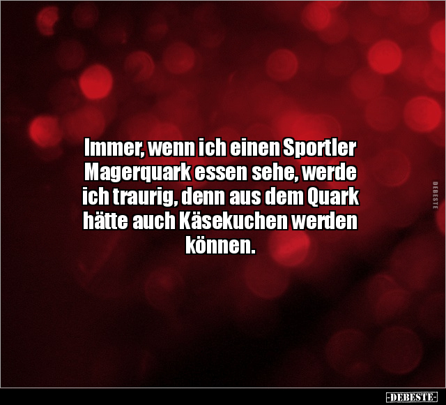 Immer, wenn ich einen Sportler Magerquark essen sehe, werde ich traurig, denn aus dem Quark hätte auch Käsekuchen werden können.