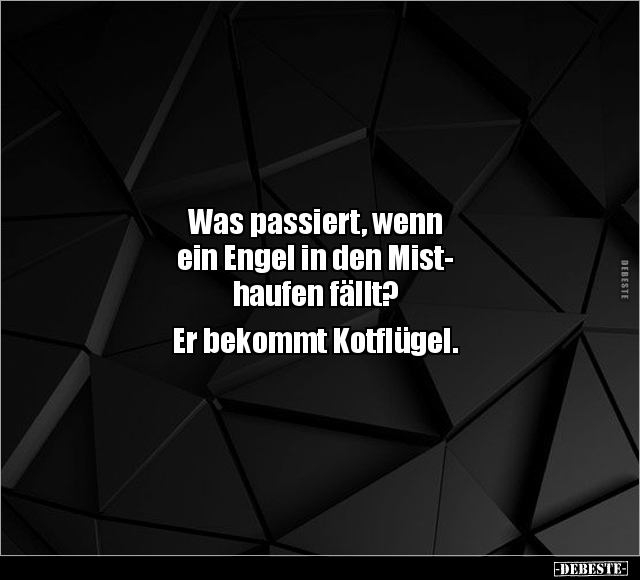 Was passiert, wenn ein Engel in den Mist- haufen fällt? Er bekommt Kotflügel.