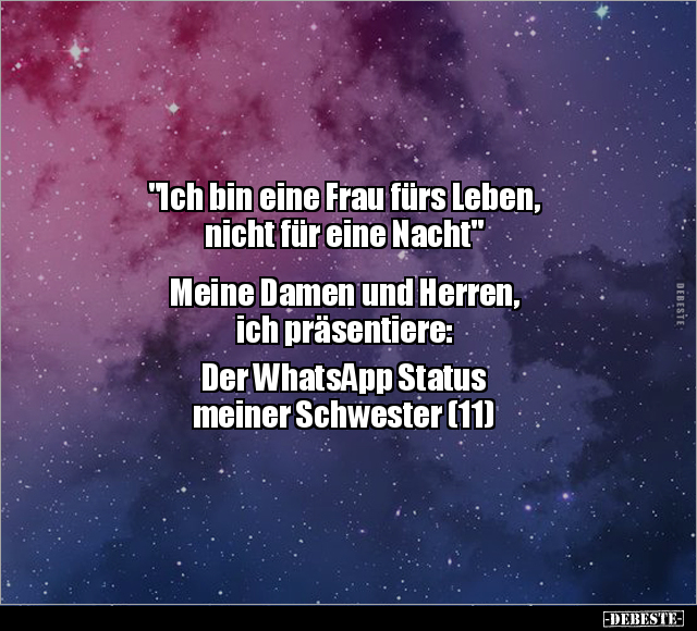"Ich bin eine Frau fürs Leben, nicht für eine Nacht" Meine Damen und Herren, ich präsentiere: Der WhatsApp Status meiner Schwester (11)