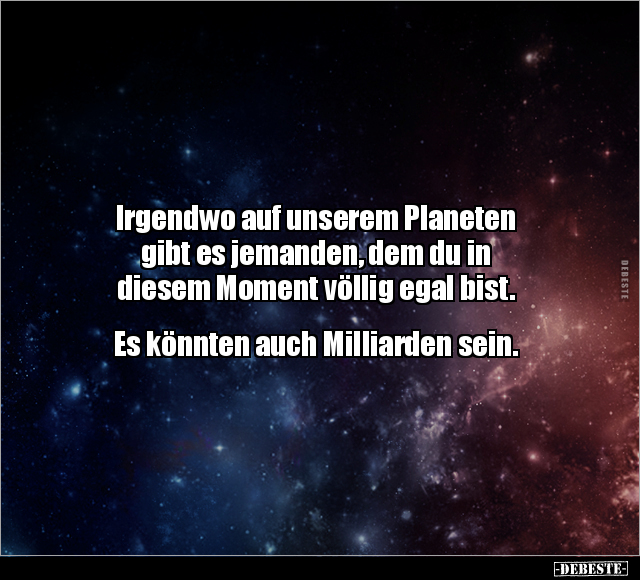 Irgendwo auf unserem Planeten gibt es jemanden, dem du in diesem Moment völlig egal bist. Es könnten auch Milliarden sein.