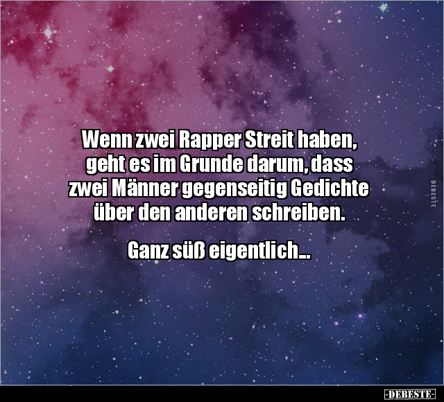 Wenn zwei Rapper Streit haben, geht es im Grunde darum, dass zwei Männer gegenseitig Gedichte über den anderen schreiben. Ganz süß eigentlich...