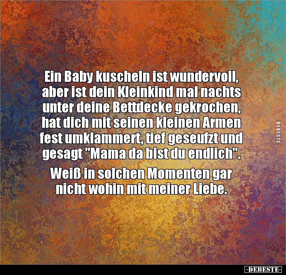Ein Baby kuscheln ist wundervoll, aber ist dein Kleinkind mal nachts unter deine Bettdecke gekrochen, hat dich mit seinen kleinen Armen fest umklammert, tief geseufzt und gesagt "Mama da bist du endlich". Weiß in solchen Momenten gar nicht wohin mit meiner Liebe.