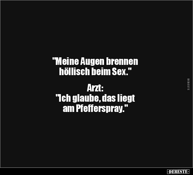 "Meine Augen brennen höllisch beim Sex." Arzt: "Ich glaube, das liegt am Pfefferspray."