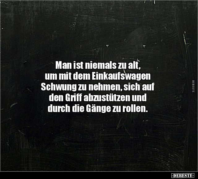 Man ist niemals zu alt, um mit dem Einkaufswagen Schwung zu nehmen, sich auf den Griff abzustützen und durch die Gänge zu rollen.