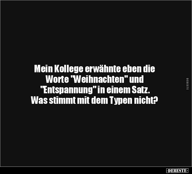 Mein Kollege erwähnte eben die Worte "Weihnachten" und "Entspannung" in einem Satz. Was stimmt mit dem Typen nicht?