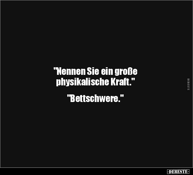 "Nennen Sie ein große physikalische Kraft." "Bettschwere."