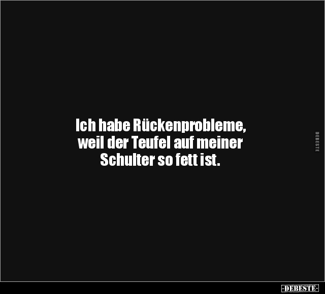 Ich habe Rückenprobleme, weil der Teufel auf meiner Schulter so fett ist.