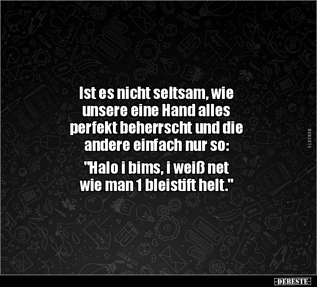 Ist es nicht seltsam, wie unsere eine Hand alles perfekt beherrscht und die andere einfach nur so: "Halo i bims, i weiß net wie man 1 bleistift helt."