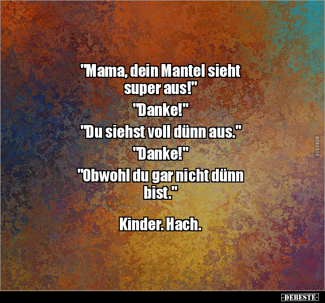 "Mama, dein Mantel sieht super aus!" "Danke!" "Du siehst voll dünn aus." "Danke!" "Obwohl du gar nicht dünn bist." Kinder. Hach.