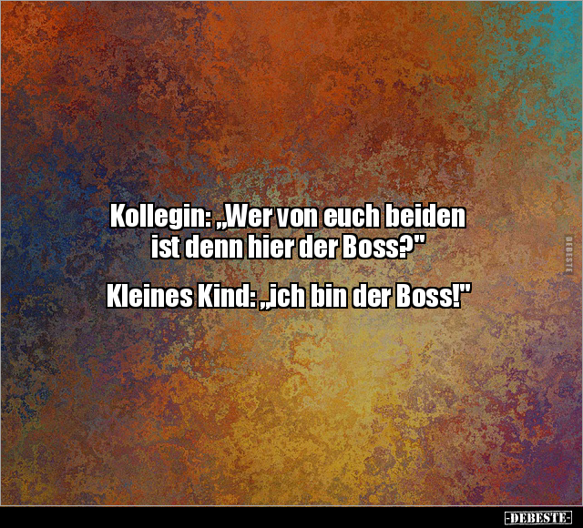 Kollegin: „Wer von euch beiden ist denn hier der Boss?" Kleines Kind: „ich bin der Boss!"